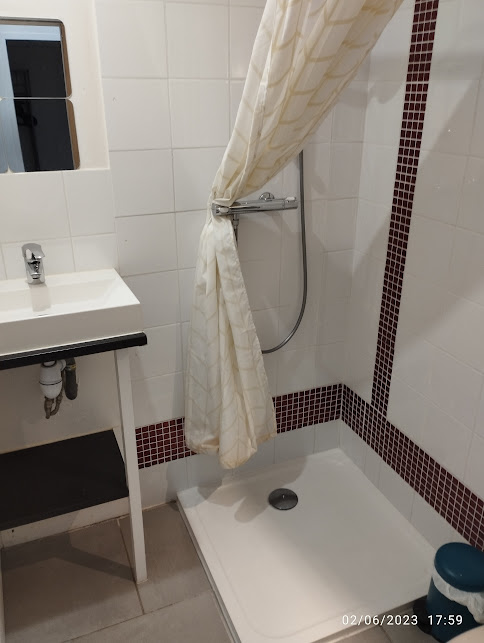 - Salle d'eau: douche, lavabo, W.C, sèche-cheveux, fer à repasser, table, étendoir.